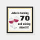 Cette serviette en papier présente un graphique de deux verres de vin rouge avec un texte personnalisable qui dit : Jean a 70 ans et gagne à ce sujet. C'est une serviette jetable parfaite pour la fête d'anniversaire des amateurs de vin !