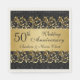 Serviettes du 50e anniversaire du Mariage avec des tourbillons d'or feuillus sur un arrière - plan damassé noir