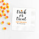 Ces serviettes en papier d'Halloween effrayantes et mignonnes présentent "Trick or Treat" dans un script noir moderne avec un accent de citrouille de jack ou lanterne orange.