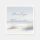 This wedding napkin features a serene beach scene with soft, muted colors that create a tranquil atmosphere. The design includes gentle waves and tall grasses framing the elegant cursive typography, which adds a romantic touch to the minimalist layout. Perfect for a coastal-themed celebration, this napkin combines pastel tones of light blue, sandy white, and pale green to evoke feelings of peace and relaxation. Its stylish and modern aesthetic makes it an ideal choice for couples looking to add a sophisticated yet calming vibe to their special day.