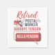 Un cadeau de départ à la retraite mignon et amusant pour un collègue qui vient de terminer son dernier quart de travail après de nombreuses années de service de livraison de courrier, de colis et de cadeaux de Noël par la neige, la grêle, la pluie et le mauvais temps. Retraité Postal Worker Goodbye Tension Bonjour Pension partez cadeaux pour votre facteur ou femme de poste préférée
