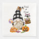 Un beau gnome entouré de bonbons et d'une chauve-souris sympathique. Texte : "Trick or Treat".