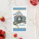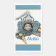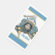 Trinacria of Sicily Three-Legged symbol guest towels/napkins. The Triancria is the symbol of Siciliy, the three legs signify the "three points" of the Island. A beautiful depiction of the traditional ceramics of Sicily in cool tones of grey, white and blue with yellow accents. The napkin is bordered with blue and a fine yellow pinstripe. The word "Sicilia" can be left as is or you can change it to say "Sicily."