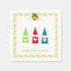 Trois mignons Gnomes de Noël sur blanc et doré. Le texte peut être personnalisé. Les gnomes apportent amour, bonne fortune et sagesse ! Joyeux Noël!