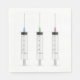Trois seringues avec bleu vert et violet. Ce design semble vraiment efficace sur ces serviettes en papier