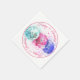 Cette serviette en papier présente trois parapluies de cocktails tropicaux d'aquarelle en turquoise, rose et violet. Le texte "Happy 55th Birthday" peut être personnalisé pour une année d'anniversaire spécifique. Le design est encerclé par un anneau rose.