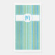 Serviette d'hôte en papier à rayures turquoise, bleu, vert et blanc. Craquant et contemporain avec une ambiance années 70. Un ensemble design pour compléter votre décor de salle de bain. Ajoutez un nom ou changez le monogramme pour customiser. Jeux de bain correspondants et accessoires disponibles.