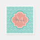 Chic turquoise vert art déco poisson échelle motif serviettes en papier avec un badge en quatrefoil rose clair que vous pouvez personnaliser en ajoutant facilement votre monogramme et votre nom. Il fait partie de la collection de printemps de poissons Arcadia en fleurs Dahlia Monogram.