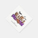 Une typographie colorée 'Happy Halloween' en orange et violet avec des chauves-souris noires pour un accent effrayant et un modèle pour ajouter facilement votre nom ou autre texte sur cette serviette en papier Halloween. Également disponible dans une palette de couleurs vert/violet. Recherchez ID683 et ID685 pour voir les fournitures et accessoires de fête coordonnés.