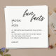 Commencez la soirée avec ces serviettes de cocktail "Fun Facts" en noir et blanc minimaliste. Elles sont parfaites pour les mariages, les fiançailles ou pour toute occasion spéciale. Personnalisez avec les noms et la date du couple heureux pour une touche de charme personnel. Vous pouvez également modifier la couleur du texte et de l'arrière - plan. Commandez dès maintenant et faites de votre journée spéciale une journée encore plus mémorable ! Noir et blanc Minimaliste 'Fun Facts' Drôle Cocktail Personnalisé serviettes pour la partie d'engagement Mariage | Serviettes de Mariage blanc avec nom et date