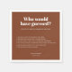 Qui aurait deviné ces choses sur la mariée et le marié ? Design moderne avec typographie audacieuse en Terracotta Burnt Orange et Blanc pour ces mariages faits amusants serviettes : Remplir vos propres noms, date et faits amusants sur votre relation et surprendre vos invités mariages. Supprimez la dernière zone de texte pour faire de la place pour des faits encore plus amusants sur cette serviette. Toutes les couleurs peuvent également être modifiées.