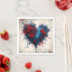 Serviette En Papier Un coeur bleu éclatant avec des fleurs rouges