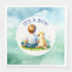 C'est un garçon Baby shower des serviettes en papier. Un bébé garçon assis à côté d'un Labrador Puppy Dog aquarelle style art de l'air.