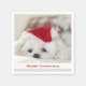 Serviettes en papier avec une adorable photo d'un mignon chien blanc portant un casquette de noël rouge.