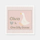 Adorable fille personnalisable une sotte oie 1er anniversaire serviettes de fête. Il présente une aquarelle illustrant une jolie oie blanche avec une bordure en vichy rose et un coeur patchwork. Vous pouvez modifier les polices/couleurs. Design rose, blanc et gris.