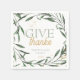 Remerciez-vous lorsque vous vous réunissez en famille et entre amis et offrez de la nourriture et des rafraîchissements avec cette élégante serviette Thanksgiving. Le texte en vert et or dit "DONNEZ merci" dans un script tendance et facile à lire les lettres. Personnalisez-vous avec votre nom de famille et l'année de votre fête de fête de Thanksgiving.