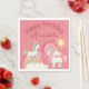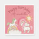 Ces serviettes personnalisées de fête ont un thème magique et enchanteur. L'arrière - plan est de couleur rose bubblegum. Deux mignonnes licornes sont représentées au sommet avec de petits arcs-en-ciel, des nuages et le soleil. Un exemple de message et de nom Joyeux Anniversaire sont imprimés dans une jolie police rose. Vous pouvez personnaliser les serviettes pour inclure votre propre nom ou texte personnalisé.