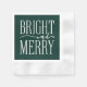 Typographie blanche festive moderne minimaliste "BRIGHT and MERRY" sur bloc de couleur vert chasseur, serviettes en papier de vacances.