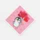 Une Mignonne Serviette En Papier Rose Avec Un Pingouin Tenant Des Ballons En Forme De Coeur Rouge Pour Les Fêtes De La Journée Valentines