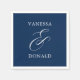 Serviettes mariages modernes avec un agencement simple et minimal avec vos noms et une élégante esperluette dans un grand format. Le thème de couleur est bleu marine et peut être modifié dans l'outil d'édition de conception.