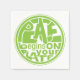 Papier serviettes avec le slogan vegan "La paix commence sur votre assiette" en lettres manuscrites écrites en cercle comme sur une assiette. Couleur verte sur un arrière - plan blanc.