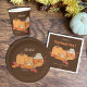 Quelques jolies serviettes en papier marron avec le doodle des citrouilles, une tasse orange, une tranche de tarte et quelques feuilles d'automne. Vous pouvez aussi très facilement personnaliser le texte en utilisant les champs modèles.Idéal pour des dîners végétaliens ou végétariens Thanksgiving. Consultez notre collection pour trouver des plaques et des tasses en papier assorties. © ArianeC Illustrations-Tous droits réservés