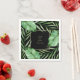 Une serviette en papier de mariage ou de fête, très élégante, avec des feuilles de banane tropicale et des frondes de palmiers entourant un cadre de carré noir contenant votre texte personnalisé. Montré ici avec un exemple de nom de mariée et de mariée et date mariage, vous pouvez personnaliser ceci avec tout texte que vous souhaitez. Un choix fabuleux pour un mariage à la plage, un mariage de destination, un mariage luau ou un mariage à thème tropical. Il fonctionne aussi très bien pour les soirées de fiançailles, cocktails, douches nuptiales, luaus ou autres événements à thème tropical.