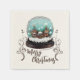 Festive Glass Snowball Village Escalade Plante Joyeux Naples de Noël. Des maisons de contes de fées en hiver avec de la neige et de beaux flocons de neige. Joli plantes escalades brun. Un joyeux souhait de Noël dans un scénario branché. Vous pouvez modifier n'importe quel texte sur les serviettes.