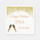 Des serviettes idéales pour une fête d'anniversaire ! Elégante bordure en parties scintillant d'or, avec verres de Champagne clinquants. Il suffit d'ajouter le nom de la personne pour l'anniversaire et la date de naissance.