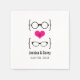 Serviettes en papier Mariage Quirky et chic Geeky Glasses avec un coeur rose flanqué de deux paires de lunettes geeky, une paire de manies et une paire de ceintures représentant le marié et la mariée. Ces serviettes, décalées mais sophistiquées, sont parfaites pour votre mariage nerveux ! Facile à customiser, ajoutez simplement les détails de votre grand jour dans les champs de texte fournis. Cliquez sur le bouton "Customiser" pour trouver d'autres options de personnalisation.