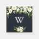 Ces serviettes en papier mariage vert blanc fleuri bleu monocorde sont parfaites pour un événement rustique. Le design est composé d'élégantes pivoines blanches aquarelles avec feuillage vert dans un arrière - plan bleu foncé. Faites de ces serviettes votre propre en incluant la dernière initiale de la mariée et du marié. Ces serviettes peuvent compléter une réception de mariage, un dîner de répétition, une fête de fiançailles et plus encore!