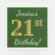Serviette En Papier Vert, Faux Gold 21e anniversaire + Nom personnalis