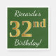 Serviette En Papier Vert, Faux Gold 32e anniversaire + Nom personnalis