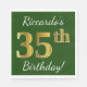 Serviette En Papier Vert, Faux Gold 35e anniversaire + Nom personnalis