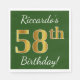 Serviette En Papier Vert, Faux Gold 58e anniversaire + Nom personnalis