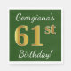 Serviette En Papier Vert, Faux Gold 61e anniversaire + Nom personnalis