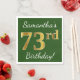 Ce design simple de serviette en papier comporte un message comme "73e anniversaire de Samantha!", avec le "73e" ayant un faux aspect doré, sur un arrière - plan de couleur verte. Le nom peut être customisé. Il pourrait être utilisé à une fête d'anniversaire pour quelqu'un qui célèbre son soixante-treize anniversaire. [~Z0000081]