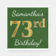 Serviette En Papier Vert, Faux Gold 73e anniversaire + Nom personnalis