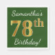 Serviette En Papier Vert, Faux Gold 78e anniversaire + Nom personnalis