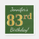 Serviette En Papier Vert, Faux Gold 83ème anniversaire + Nom personnal