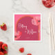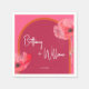 Ce design est composé de serviettes en papier mariage d'été aux motifs floraux roses et oranges audacieux, avec des polices de caractères élégantes pour le nom du couple et des polices propres pour les détails.