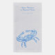 Une illustration vintage de crabe bleu est affichée sur une serviette en papier d'invité en argent ou dans une autre couleur de votre choix. Ajoutez vos informations personnelles ou professionnelles, ou supprimez le texte. Un design fantastique pour votre réunion de famille, ébullition de crabe, tranquilles journées d'été côtières / Aussi idéal à votre restaurant de fruits de mer ou pour un mariage avec un motif nautique. Cliquez sur le logo de l'alma ci-dessous pour voir nos autres produits à thème crabe, nautique et vintage. Il vient par ensemble de 50 serviettes.