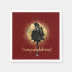 Fun way to say félicitations ! Design propose découpe photo vintage de femme en robe et chapeau de dessus dansant sur le dessus de bouteille de champagne avec disque or orné sur rouge foncé / marron arrière - plan et or texte personnalisable.