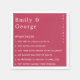 Ajoutez une touche personnelle à votre réception de mariage avec ces serviettes mariages design et modernes. L'arrière - plan viva magenta plein de vie constitue le cadre parfait pour la typographie élégante et les faits amusants sur la mariée et le marié. Vos invités aimeront apprendre sur vos choses préférées, comment vous vous êtes rencontrés et d'autres informations intéressantes sur votre relation. Le design est simple et personnalisable, vous permettant de choisir la couleur parfaite pour correspondre à votre thème mariage. Ces serviettes ne sont pas seulement pratiques, mais elles ajoutent une touche unique et charmante à votre réception. Rendez votre journée spéciale encore plus mémorable avec ces serviettes mariages amusantes et personnalisables.