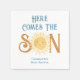 Ces serviettes en papier baby shower sont dotées du texte "Here Comes The Son" dans une typographie élégante bleu et marron avec une jolie aquarelle jaune soleil souriant. Facile à personnaliser. Aquarelle originale © Michele Davies.