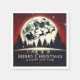 Une silhouette sur le thème des vacances de Père Noël qui traîneau et rennes volant à travers une grande pleine lune. Entouré de sapins de Noël sous un ciel nocturne étincelant évoquant la joie festive et l'esprit de fête.