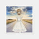 Voyager de Miss à Mme serviettes de douche nuptiale avec la mariée face à une route ouverte. Personnalisez-le avec les détails de votre événement.