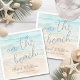 Celebrate your seaside wedding with these elegant cocktail napkins featuring a calming watercolor design in soft shades of blue and tan. The slightly abstract coastal artwork captures the relaxed, natural feel of the ocean meeting the shore, creating a serene, beach-inspired look.
