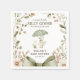 Elevate the ambiance of your baby shower with these charming and whimsical gender-neutral napkins. Delightful and endearing, they showcase a loving mother sheltering her baby goose from the rain, surrounded by a delicate botanical wreath and bow. Drawing inspiration from bohemian aesthetics, these napkins can be easily tailored to your unique style. In a calming palette of sage green and brown, they are perfect for celebrating the arrival of both baby girls and boys.
