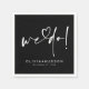 Beautiful minimalist wedding napkins "We Do!" designed in bold black for a modern and luxurious touch to your table décor. The elegant heart typography title pairs perfectly with the romantic clean text, creating an unforgettable ambiance for this special day. Personalize the text and background colors to match your wedding palette, adding a unique and stylish flair to your celebration.